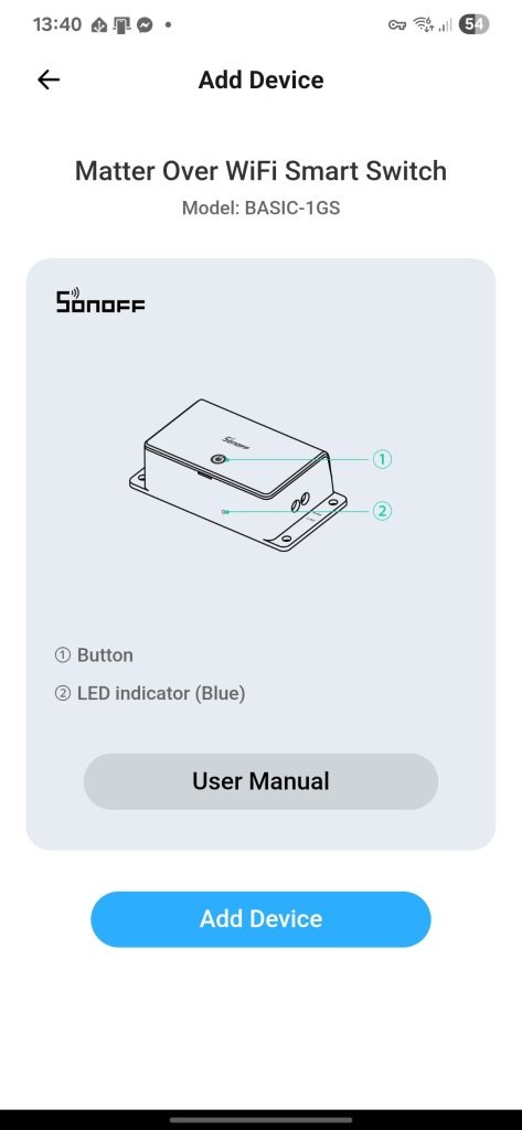 So what’s new? Matter compatibility… large touch surface for manual operation, can use it as a “magic switch – that is for use with double pole light switching… and completely local control. By large touch area I mean just press the top. 10 Max resistive load remains the same, 2.4Ghz WiFi remains the same. Indoor use. Schedules, timers as always via the eWeLink app if using that. So basically the familiar Sonoff BASIC but MATTER. Voice control with Matter devices like Google Home, Amazon Alexa, apple Home, Home Assistant, Samsung SmartThings.