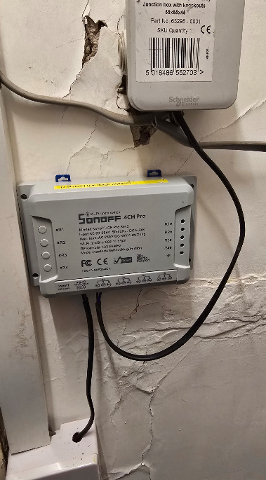 The whole lot is fused – and I’ve never had any issues with Sonoff mains powered devices since and including the early Sonoff devices… but a breaker is not a bad idea.. I’m most likely to rip the lot out as the original layout looks like amateur night out – when we come back in January and put in proper kit but I’m on the clock now… good tip. Cheapest possible breaker box with a bit of din rail would be good.