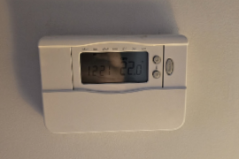 Meanwhile, on the other side of that wall, we have the living room and the original thermostat, which is a battery-powered job. Three AAA batteries have to power a little relay. I can’t imagine them lasting more than a year without being replaced. Normally, that would not be a problem, but we’re not guaranteed to come back every year – I’ve already had this problem with my Aqara battery-powered video doorbell whose batteries are good for maybe 9 months.