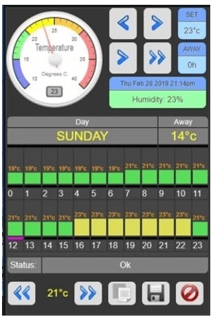 I’ve set my system to come on at a much higher temperature, around 10 degrees, when in the away mode and then, of course, we have active and night modes. Being used to Spanish weather, I like to be warm, so 23°C when active and 16°C overnight.
