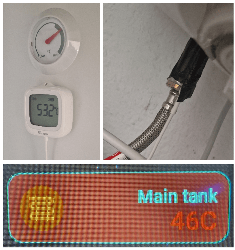 My sensor on the side of the water tank here in Spain has proven very useful – and no matter where we are I can quickly check if the hot water is working – no problem. I need one of those on the tank back in the UK as I can currently turn on the power to the HW tank via a Sonoff phone-home eWeLink smartplugs when we go back in winter – great but can’t actually tell if the oil water heater is on for sure… makes the difference between getting there after a long flight to a nice hot bath – or freezing to death with a cold water wash…:-)