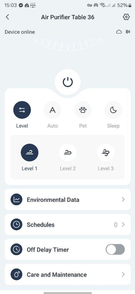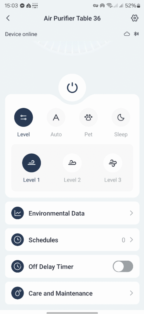 I like it. Adjustable or automatic soft-glow light appears under the table-top – and also illuminates the various controls – fan speed, timers and more. Of course all of this can be done from the Switchbot APP and hopefully soon via MATTER and importantly for me, Home Assistant.