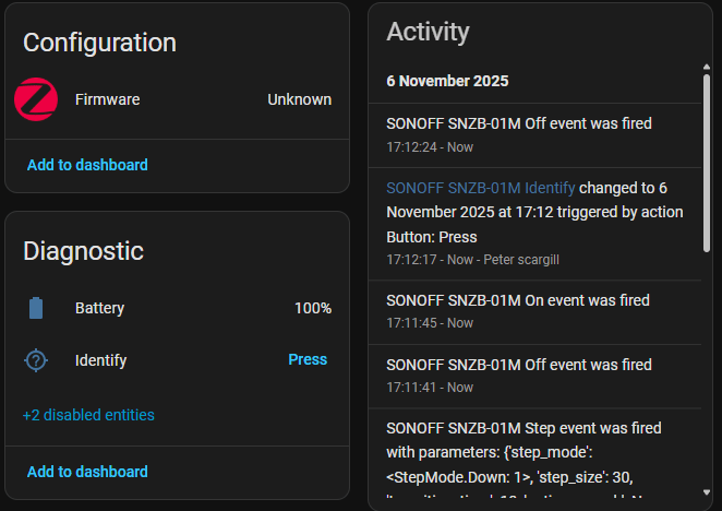 You could of course choose to use these with the Sonoff APP but you’d need a Zigbee hub, presumably one of theirs – if you already have Home Assistant then you probably already have a Zigbee dongle or Ethernet Zigbee device – and thankfully it is my experience that Sonoff products are always supported in Zigbee2MQTT which is a readily available plug-in for Home Assistant as well as a stand-alone package.