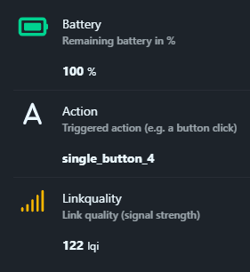 WELL that was easy – I tried pressing each button one at a time – Zigbee2MQTT reported “button 1 single” etc. The I tried double-press – “Button 1 double” – and finally holding the button in.. “Button 1 long” etc. Well, this is a surprise! Not only single and double but also triple press! I’m using early firmware when I use this. So when I hit triple press once and it did a double press after that all by itself. But I guess that’ll go away by the time you see this.