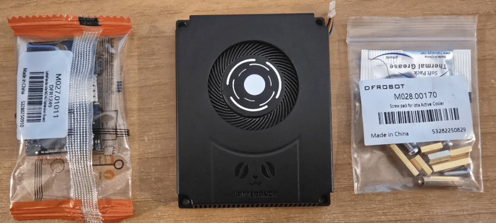 Two more boards – the M2 4G expansion board and the IOTA active cooler.